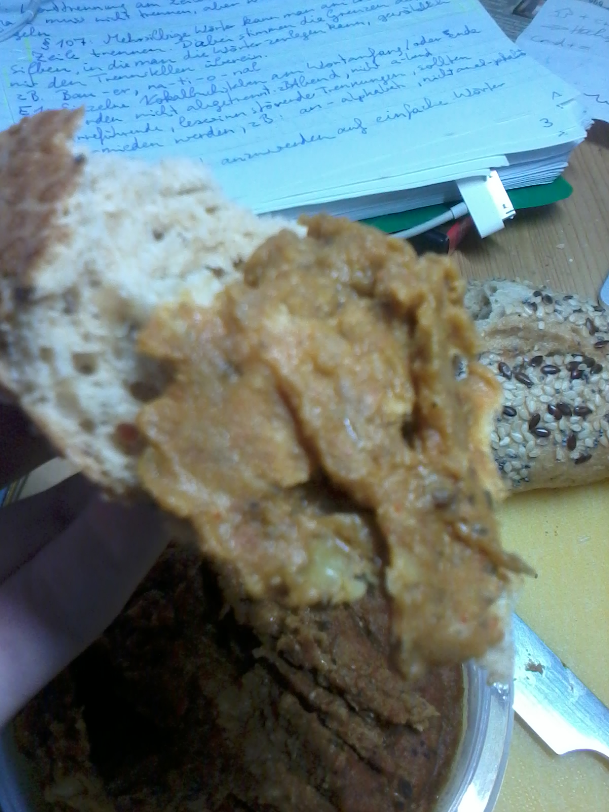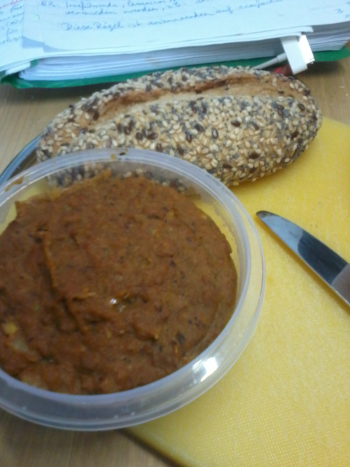 Mein Linsenaufstrich war so lecker, dass ich euch das unbedingt extra sagen muss. Und billig ist er auch. Man nehme also