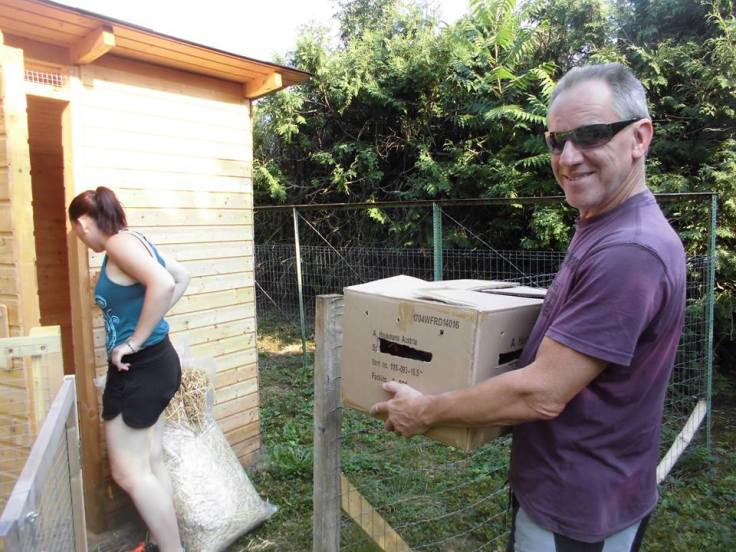 Sonja und Kerstin legen übrigens bereits Eier (die anderen sind noch zu jung) und trotz des ganzen Stress und der Umsiedlerei hatten wir bereits am ersten Tag zwei Eier.