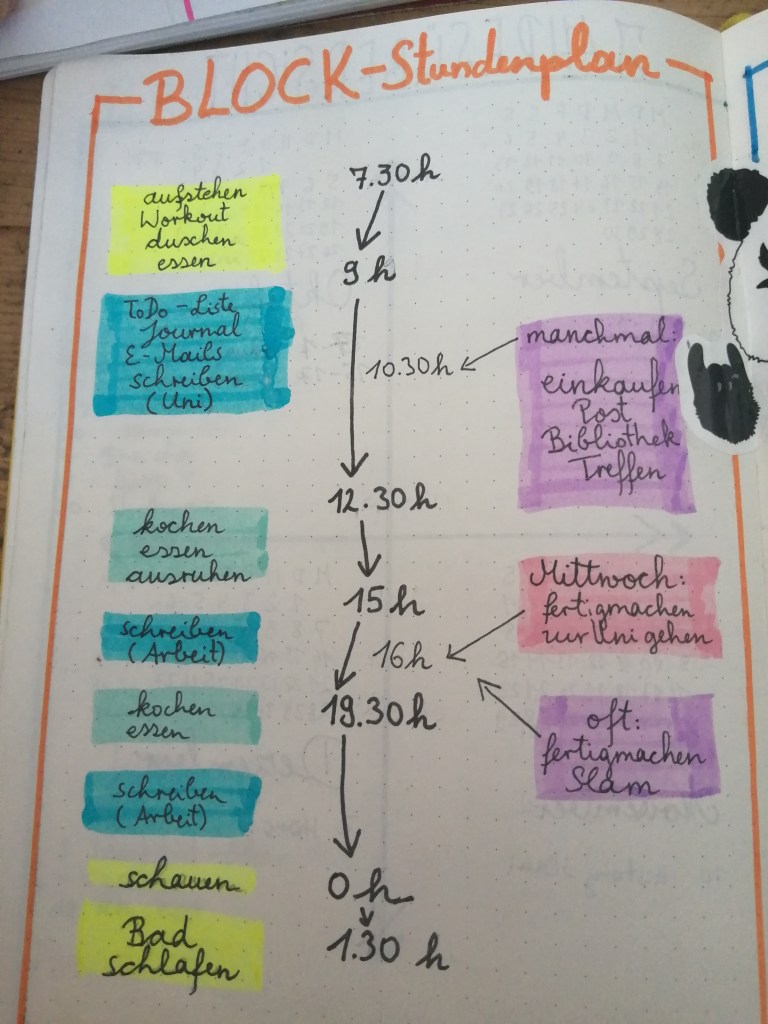 Ihr versteht, was ich meine: Das Blocksystem sieht vor, das was man sich vornimmt und in der Zeit nicht schafft, verschiebt sich auf den nächsten Tag. Du darfst dich nicht stressen und es im nächsten Block machen. Das ist das System. Aber ich hab das halt für mich angepasst. Mit dem Blocksystem hab ich gelernt, was ich will. Und wann ich es machen will.