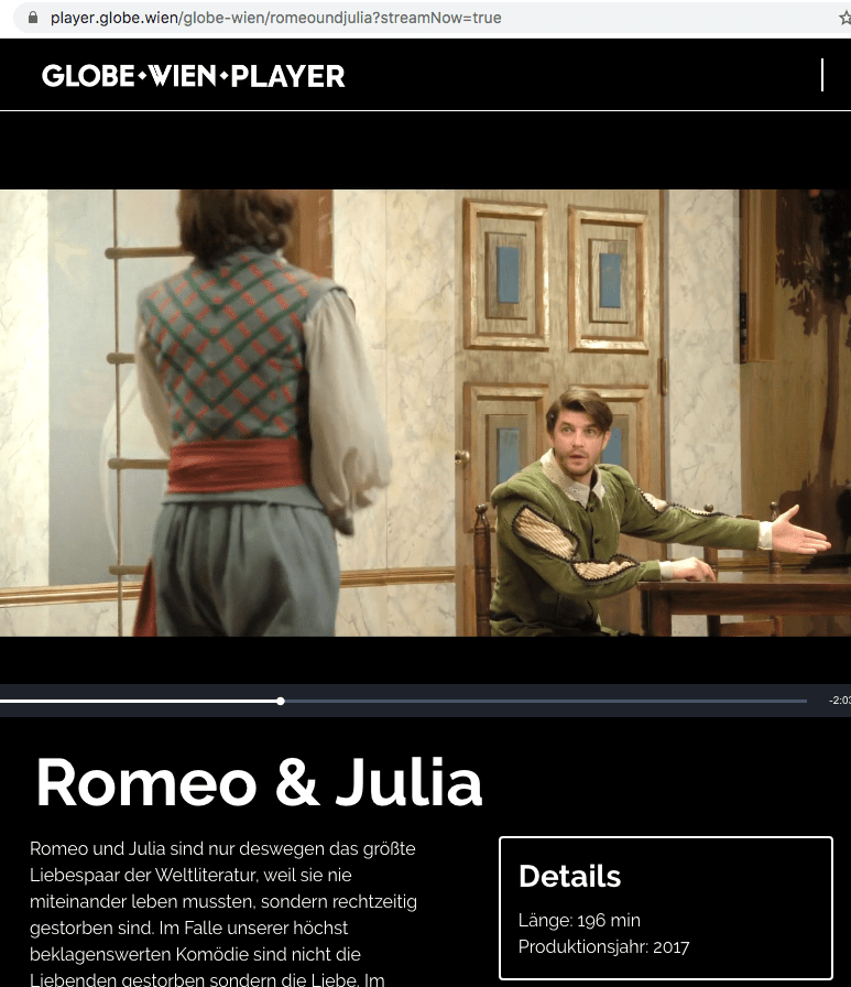 - Film (eigentlich Theaterstück): Die höchst beklagenswerte und gänzlich unbekannte Ehetragödie von ROMEO & JULIA. Eine Komödie von Michael Niavarani sehr lang nach William Shakespeare (gratis hier)