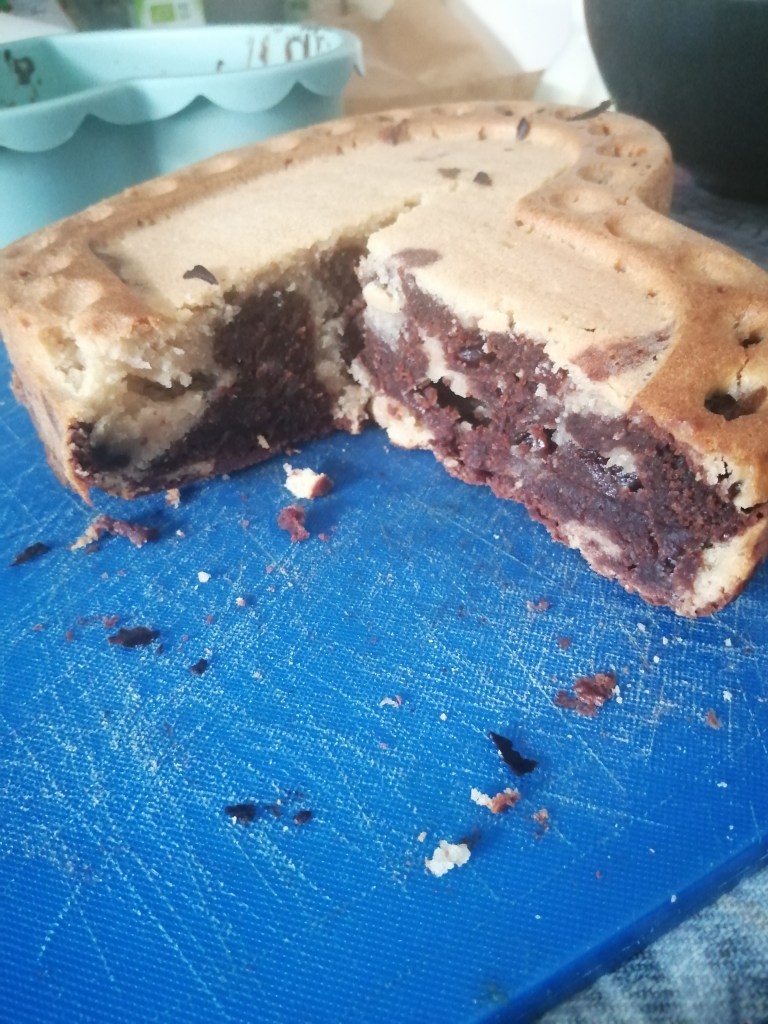Am Freitag habe ich endlich einen Kuchen gebacken, darauf hatte ich schon tagelang Lust (nicht unbedingt aufs Backen, aber aufs Essen). Ich esse ein oder zweimal am Tag, habe nie wirklich Lust, irgendwas zu kochen. Also esse meistens was Schnelles: Nudeln, CousCous, Toast, Salat, Tiefkühlgemüse.