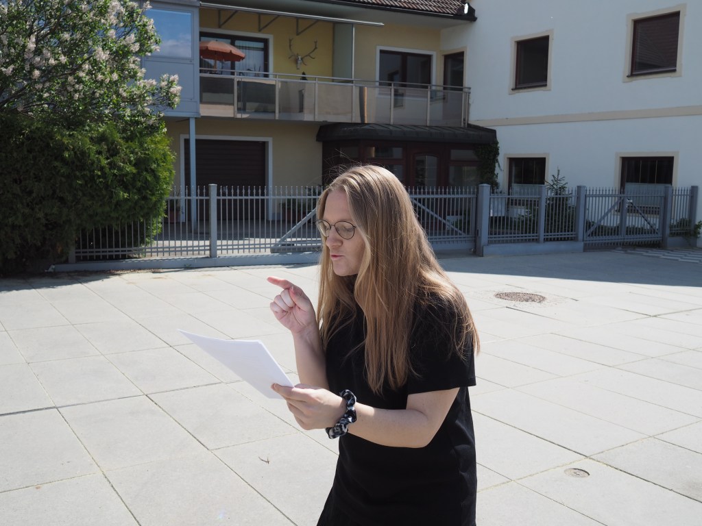 Also ich habe einige Texte von mir mitgebracht, in denen ich eigentlich die ganze Zeit sage: Ich hasse die Welt, ich hasse die Menschen, aber eh nur wegen der Message! Also wenn ich euch nicht dauernd sagen müsste, dass ich euch alle hasse, würde ich wild um mich schießen. Lebensrettende Texte sozusagen.
