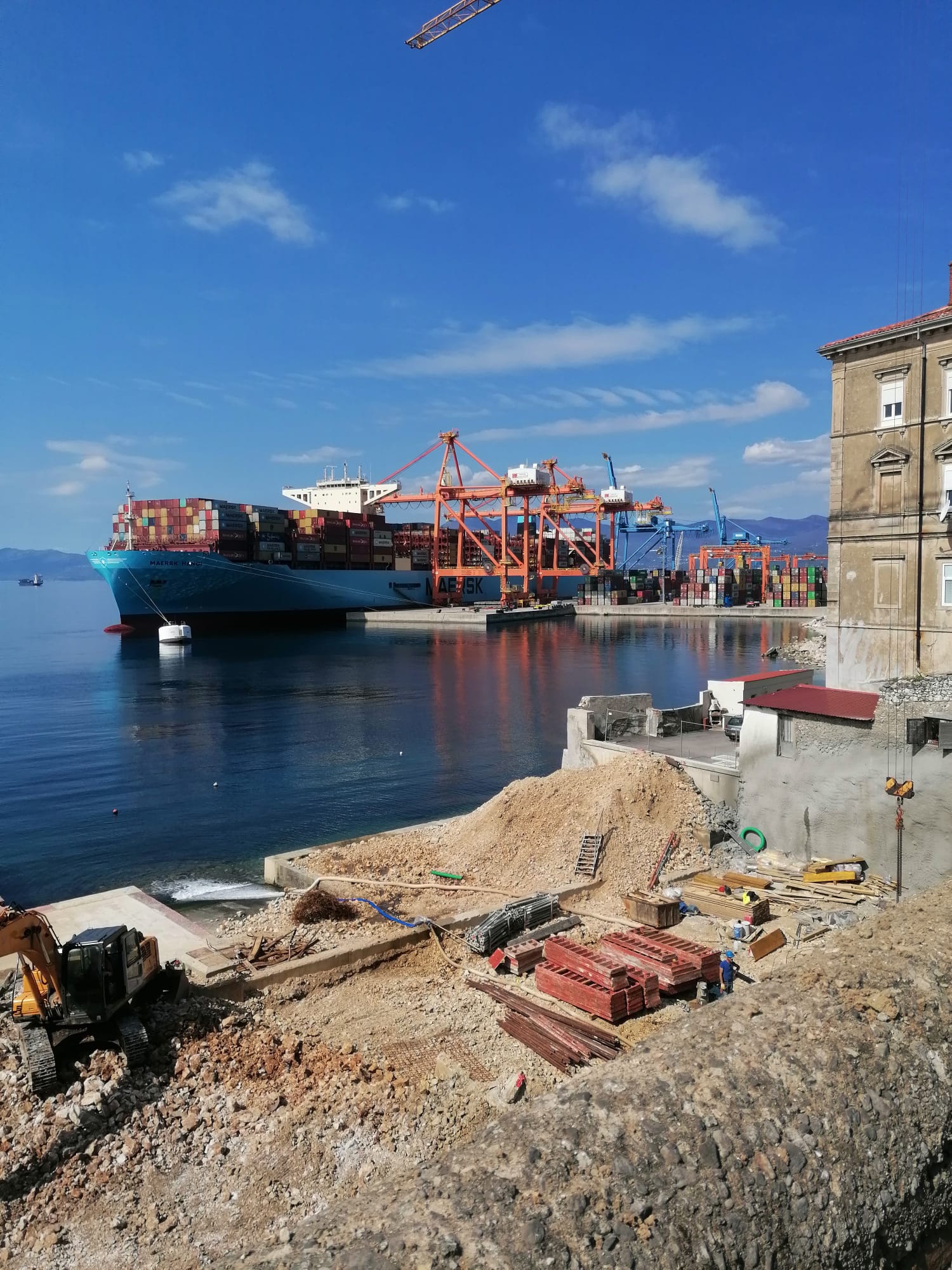 Heute sind wir auf der Suche nach Strand in eine Richtung gegangen und zum Containerhafen gekommen. Das war für uns extrem spannend, weil wir ja nie bei einem Hafen waren, also nie so richtig. Da lag ein Schiff, groß wie eine Stadt, und wurde von drei riesigen Kränen mit hunderten Containers beladen. Das war sehr spannend für uns. Dann sind wir weitergegangen, und plötzlich, zwischen zwei Häusern, taucht eine Stiege auf, und führt hinunter zum Meer. Kein Strand, aber wie schön ist das? Du gehst die Straße entlang, und dann plötzlich: Hey, willst du nicht kurz zum Meer hinunter?