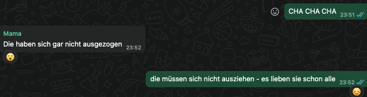 Meine Mutter, eine meiner Schwestern, einer meiner Brüder und ich haben eine WhatsApp-Gruppe für den Song Contest. Hier die besten Bits.